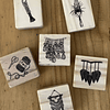 Set de 6 timbres con motivos de macramé, incluye tinta marca Artline